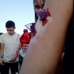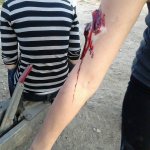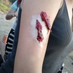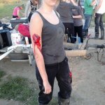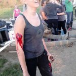 Szóval, megérkeztünk, egy rövid megbeszélés után mindenki nekilátott a sminkelésnek, és a kárhelyfelmérésnek, hogy hova fog bemászni, mi lesz a háttérsztori, és egyéb nyalánkságok. Mónival, Dórival, Szindyvel, és Klárit leváltó új vezetőnkkel, Zitával voltam együtt, aminek egyrészt örültem, másrészt megint bennem volt a para, hogy pont a 2 vezetőnk mellett fogok beégni, mivel Szindy nagyon bízott abban amin Klári mesélt neki a produkciómról. Szóval, szereztem egy antennát, üvegszilánkokat, majd visszamentem a többiekhez és kerestem valakit aki felsminkel. Volt egy kis szóváltás amiatt hogy valódi szilánkok lesznek a vállamban, de végül semmi bajom nem lett belőle, egy karcolás nélkül megúsztam.