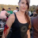 Miután mindenkit visszahoztak a megmentőink, elkezdődött a sminkek helyrehozása, újra előkerültek a sebbázisok, a művér, a sógyurma és társai. Megint bemásztunk autóinkba, de most mindannyian súlyosan sérültek voltunk, most elmebetegekre nem volt szükség. Helyette eszméletlenek bújtak el, várva arra hogy a keresőkutyák akadjanak nyomukra, a fákra másztak önkénteseink, akik sajnos nyílt törést szenvedtek. Szóval, mindenki elfoglalta a helyét, fénycsóvák tűntek fel, majd tűntek el. Ez még megismétlődött egy párszor. Majd minden fényárban úszott, a magyar és vidéki vöröskeresztesek egy szervezett mentési láncot hoztak létre, ami nagyban megkönnyítette a helyzetünket, ugyanis kezdett elegünk lenni, fáztunk és fáradtak, kimerültek voltunk. Most ott helyezkedtem el, ahol az előző mentésben Zita volt, a kocsi hátsó, kevésbé összezúzott részébe pedig egy igazán apró és annál tehetségesebb lány, Eszti bújt be. Ahol az első mentésben én foglaltam helyet, ott volt azt hiszem Dóri, Dóri eredeti helyén Móni időzött, de nem sokáig, mert ő akadályozó szerepkörben volt mellettünk. Mikor hozzám megérkeztek az első vöröskeresztesek, már tudtam hogy érzelmileg teljesen lemerültem, így nem tudtam imitálni, sem sírni, szóval inkább üveges szemekkel szemléltem azokat az embereket, akik azért voltak ott hogy akkor épp rajtam segítsenek. Arra emlékszem, hogy ott és azonnal bekötöztek, nyugtattak, főleg egy szerintem lengyel származású srác, avagy férfi, aki biztosan nem olvas, de köszönöm neki hogy végig mellettem volt. ♥ Szóval, miután leszíjaztak egy board-ra, és felvittek a többi sérült mellé, egy magyar lány rögtön őrangyalommá szegődött, végig Eshmark-ban tartotta a nyakam, és beszélgetett velem, majd mikor közöltem vele hogy rajtam kívül volt még egy lány az autóban, rögtön magához rendelt valakit, hogy nézzen utána a barátnőmet kimentették-e már? Letakartak ilyen fele ezüst-fele aranyszínű melegítő takaróval, amit kérnem sem kellett, számukra természetes volt. Bekerültem egy mentőautó-szerűségbe, Dobi, Móni, a lengyel megmentőm, egy magyar ellátó és talán még valakik mellé. Mikor betoltak a kocsiba, az őrangyalom még megmondta a lengyel srácnak hogy adja át nekem hogy Esztit megtalálták, kimentették, jól van. Milyen kedves! Vidéki srácunk társasága olyan nyugtatólag hatott rám, hogy legtöbbször lehunytam a szemem, amit ő pillanatokon belül érzékelt és ujjait a nyakamra helyezve bizonyosodott meg arról, hogy nincs semmi bajom. Igaz, egy nagyobb fékezésnél akkorát koppant a fejem a pótkeréken, mint a… szóval nagyon. De akkor vált forróvá a helyzet, amikor valaki megforgatta a lábamban az antennát, mert akkor nagyon hihető ordításba és jajveszékelésbe kezdtem, amit megmentőm “You are be strong. Keep calm.” hozzászólásokkal nyugtázott. Nem tudom ki voltál, kedves idegen, de te voltál az este fénypontja! Szóval, bekötöztek, elláttak, megnyugtattak, majd megérkeztünk a Befogadóhelyre, ahol eltöltött 2 perc után lépett életbe a ropi, felvették az adatainkat, majd miután összefutottam Szindyvel, közös megegyezés és létszükséglet miatt a zuhanyzó felé rohantunk, amikor a tükör előtt megtorpantunk, mivel egyikünk sem mert szembenézni önmagával. A látvány megdöbbentő és sokkoló volt. Mint egy agyonvert hajléktalan 😀 A zuhanyzás és vérlemosás után egészen emberi külsőt öltöttünk mindketten. Mikor mentünk vissza a sátrunkba, Pepu orvul letámadva ellopta a lelkünket a fényképezőgépével, amit persze megosztott mindenkivel. Persze a képen én felettébb viccesen nézek ki, pizsinaciban és térdig érő gumicsizmában, törülközővel a nyakamban.
